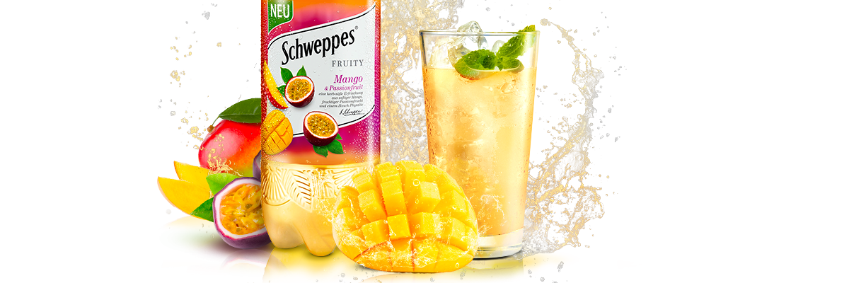 bringt. Damit rundet Schweppes Fruity Mango & Passionfruit die Sortenvielfalt des