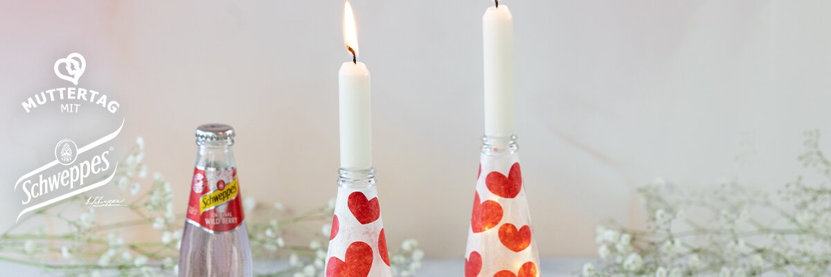 Kerzenständer mit leeren Schweppes Flaschen