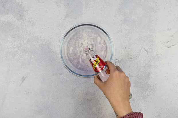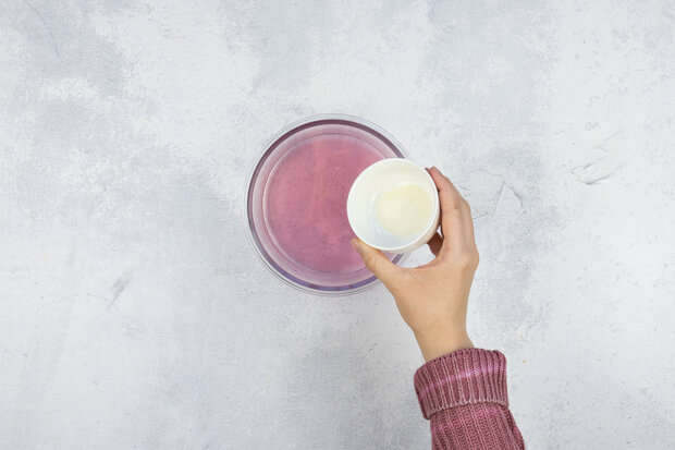 Optional: Die Mischung mit einer Messerspitze Lebensmittelfarbe einfärben.