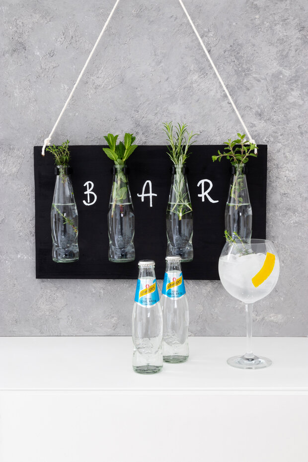 Du bist auf der Suche nach Upcycling Ideen für deine Glasflaschen? Wie wäre es mit einem Barschild für deine liebsten Gin Tonic Kräuter oder einer dekorativen Wandvase? Die Möglichkeiten bei diesem DIY-Projekt sind endlos.