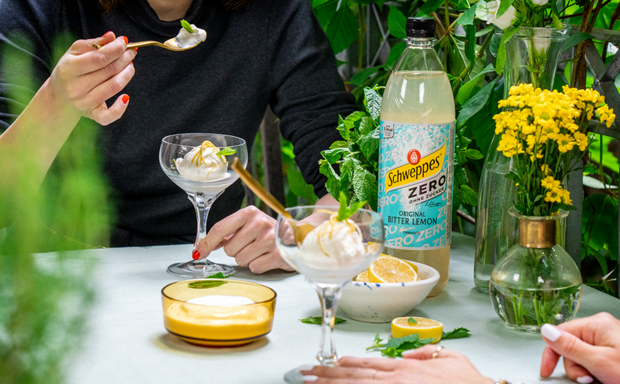 Zitronen Frozen Yogurt mit Schweppes Bitter Lemon Zero: