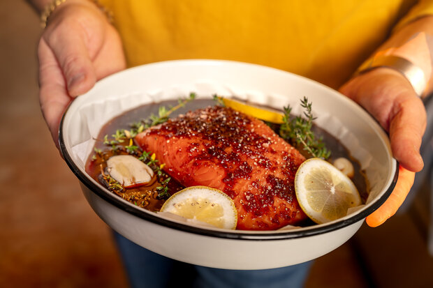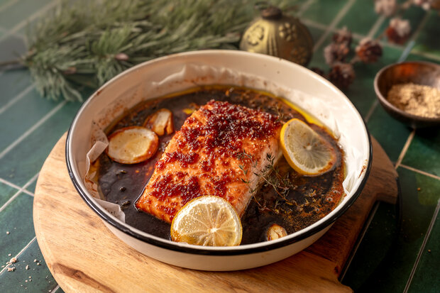 Serviere den frisch gebackenen Lachs und genieße den vollmundigen Geschmack!