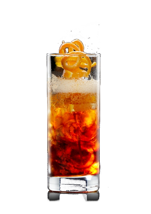 Eiswürfel in ein Longdrinkglas geben, Ramazzotti hinzufügen und mit Schweppes American Ginger Ale Zero auffüllen. Mit Orangenschale garnieren.