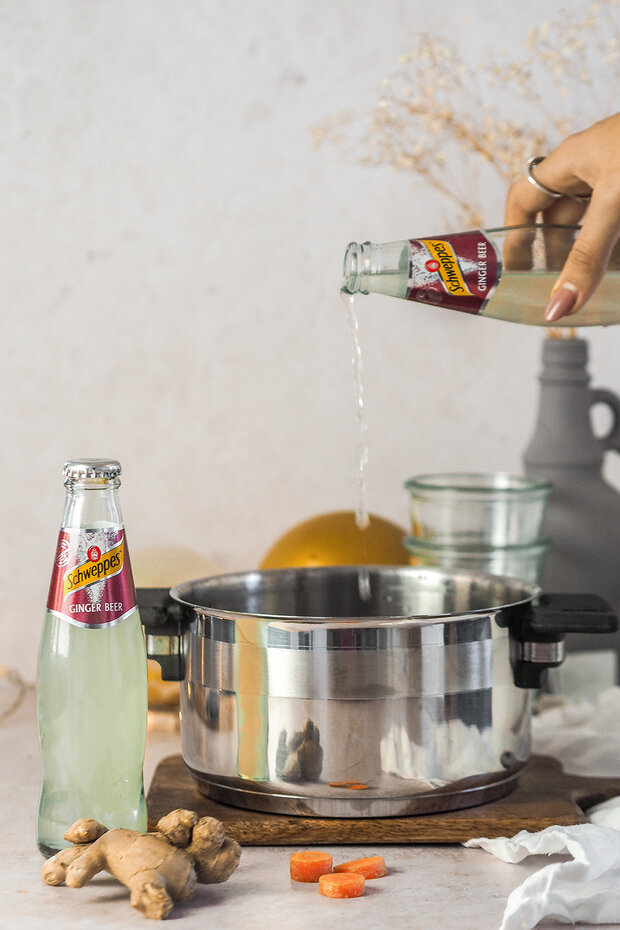 Suppenliebhaber aufgepasst! Diese Karotten-Ingwer-Suppe mit Schweppes Ginger Beer ist nicht nur eine unglaublich leckere, sondern auch gesunde Vorspeise für den Silvesterabend! Wir zeigen dir jetzt Schritt-für-Schritt wie du sie zubereitest.