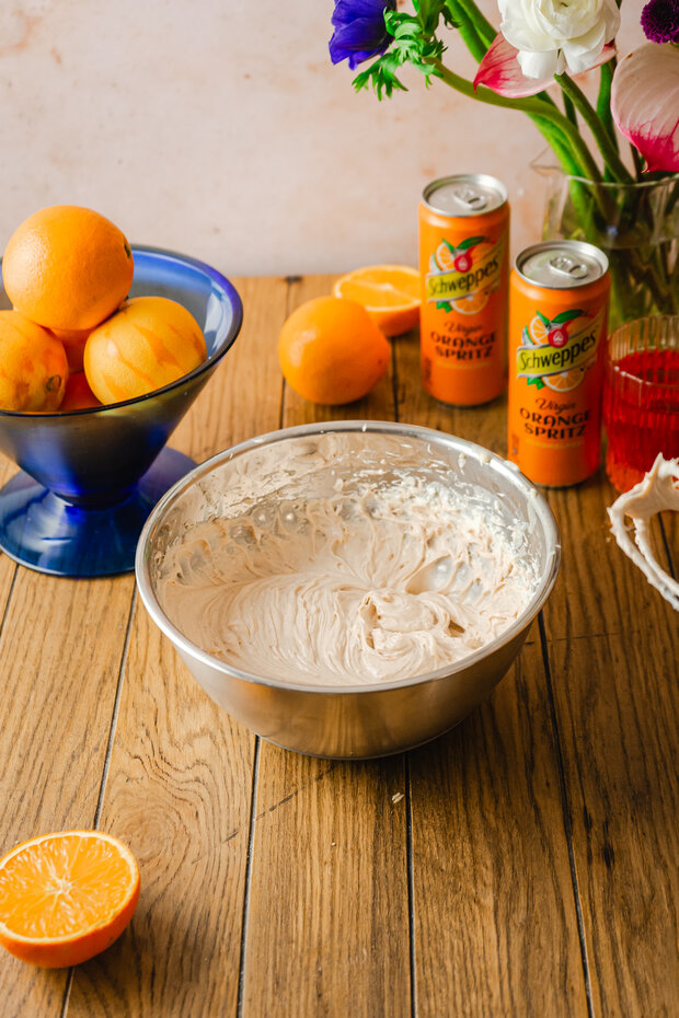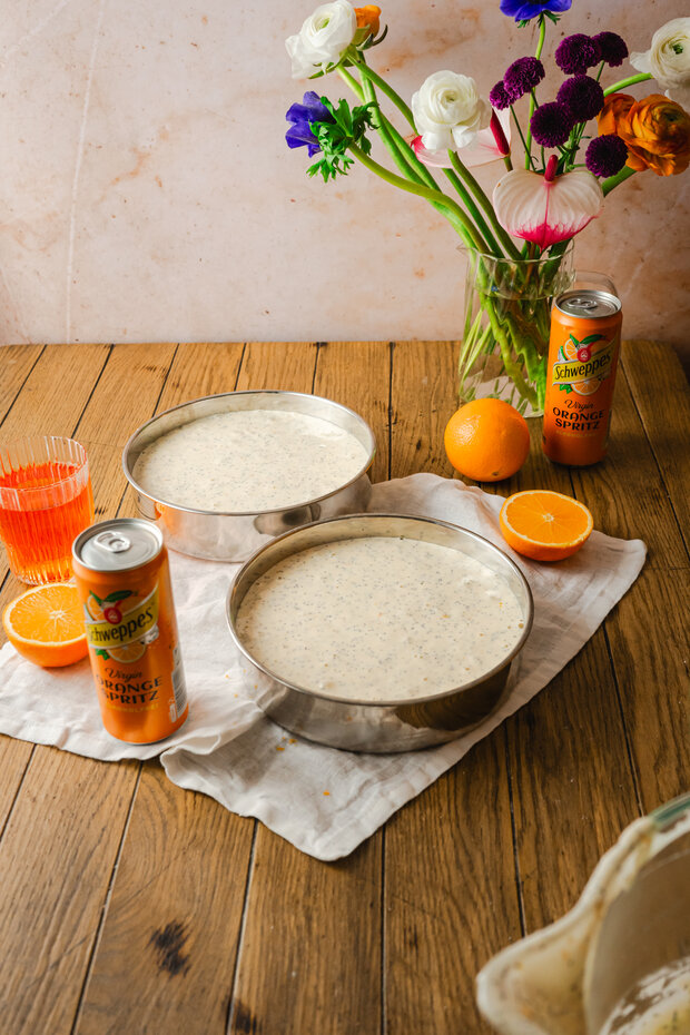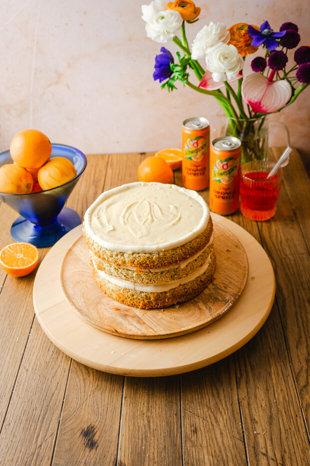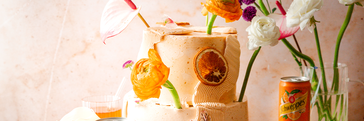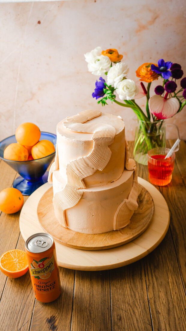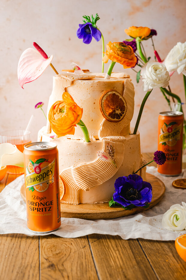 Diese Hochzeitstorte ist ein echtes Sommer-Statement. Luftige Böden, feine Cremes und eine fruchtige Tränke mit Schweppes Orange Spritz machen sie zum Highlight jeder Feier. Farbenfroh, aromatisch und mit ganz viel Liebe zum Detail – perfekt für alle, die es gerne ausdrucksstark und besonders mögen!