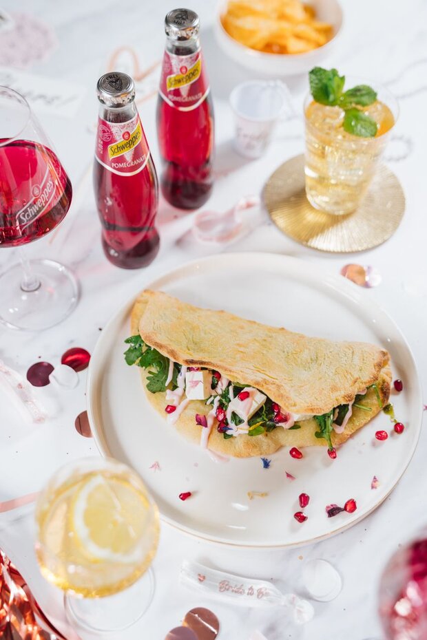 Pizza-Sandwich mit Schweppes Pomegranate