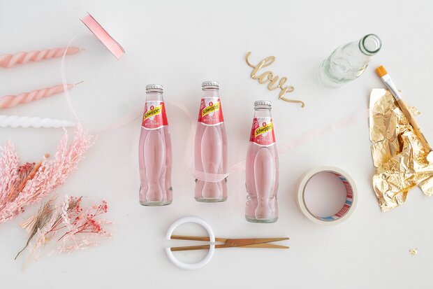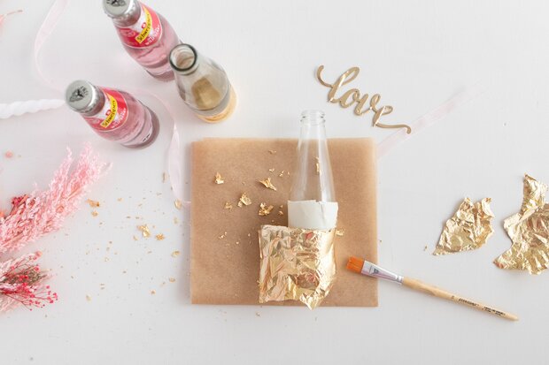 DIY Hochzeitsdeko: Trockenblumen-Kerzenständer aus leeren Glasflaschen mit Blattgold