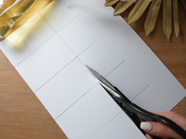 Schneide alles so aus, dass du am Ende fertige Rechtecke im 6cmx10cm Format vor dir liegen hast