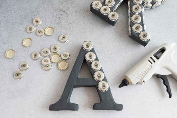 Upcycling: XL-Deko-Buchstaben mit Kronkorken basteln