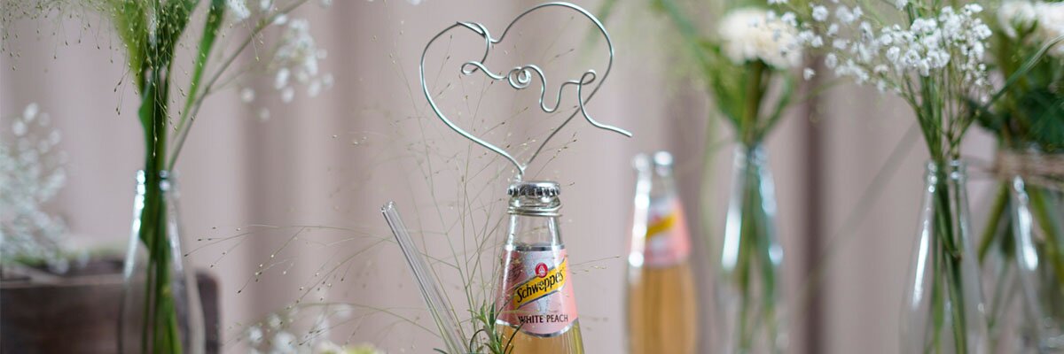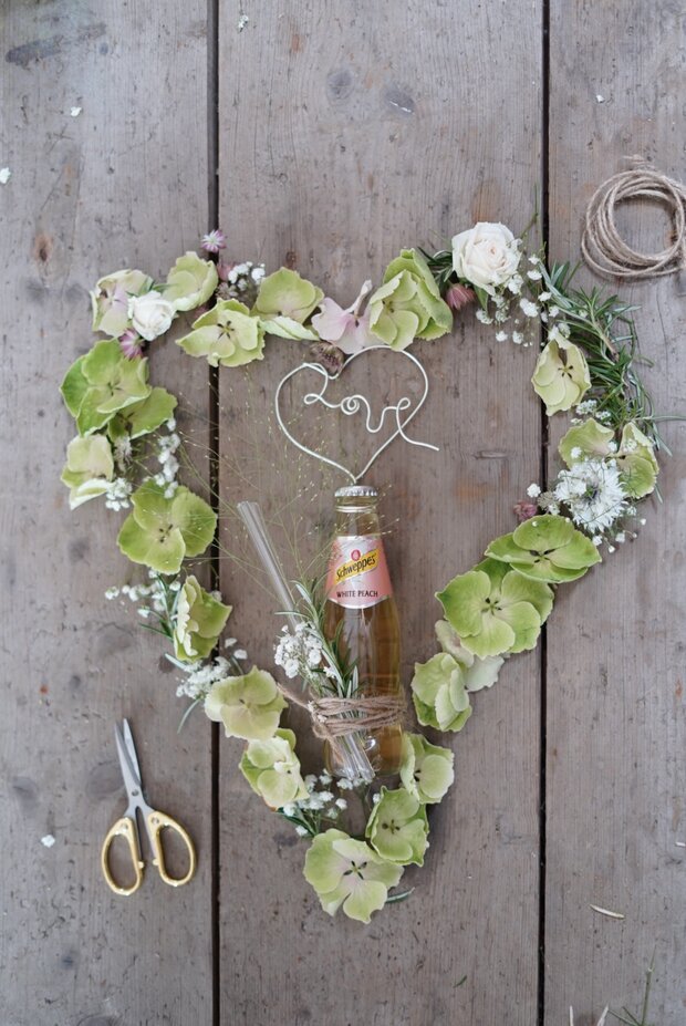 Forme den Schriftzug "Love" aus dem Alu-Draht. Dafür kannst du eine Zange oder deine Hände benutzen. Biege die beiden Enden des Drahts zu einem Herz.