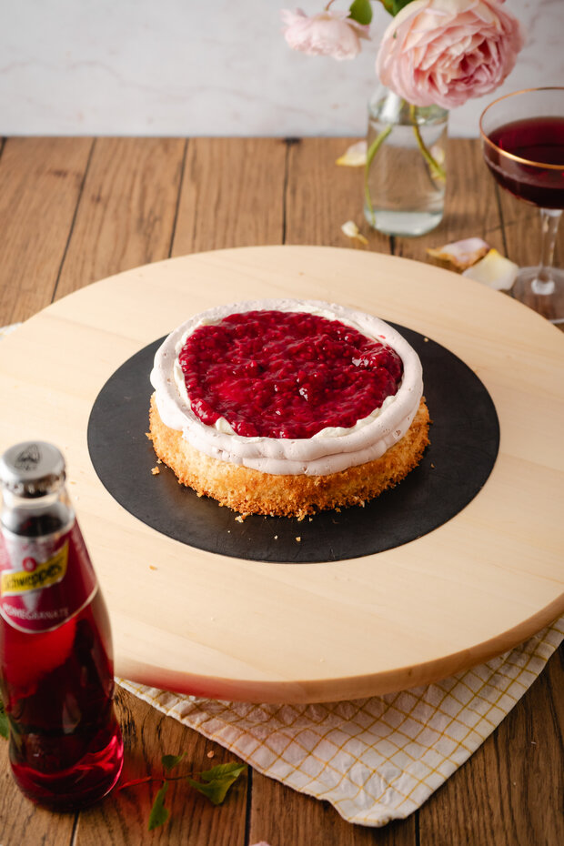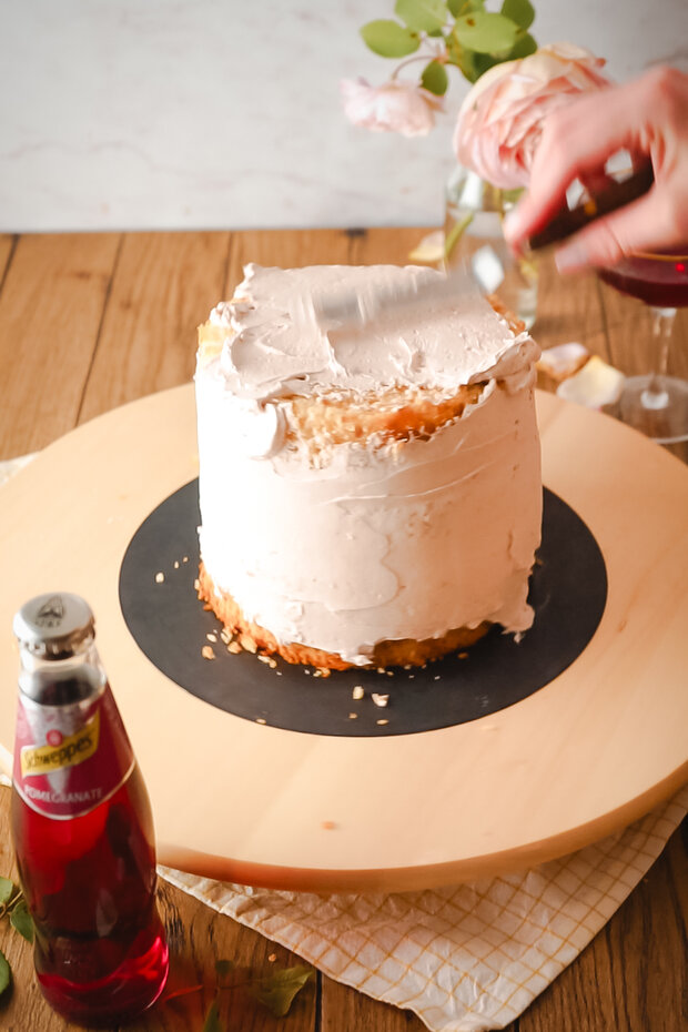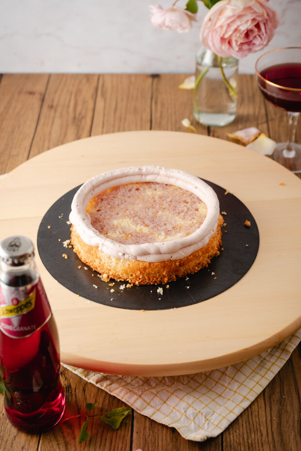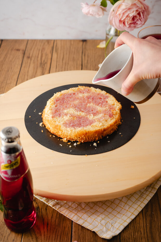 Jeden Boden mit dem Schweppes Pomegranate Sirup nicht zu sparsam tränken.