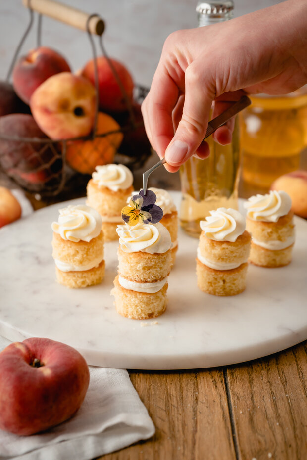 Auf der Suche nach einem passenden Dessert für den besonderen Tag? Die Mini Törtchen mit Schweppes White Peach und Pfirsichfüllung sind die perfekte süße Ergänzung für den besonderen Anlass.
