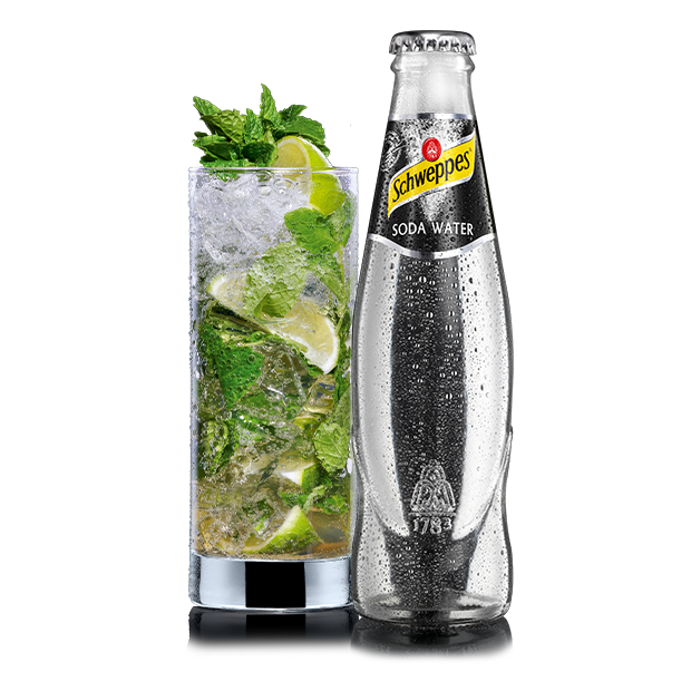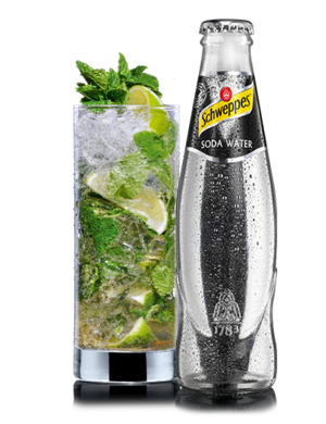 Minzblätter, Zucker und Limettensaft in ein Longdrinkglas geben und mit einem Löffel leicht andrücken, nicht zerstoßen. Rum sowie Eiswürfel dazugeben, mit Schweppes Soda Water auffüllen und umrühren. Anschließend mit einer Minzspitze garnieren.