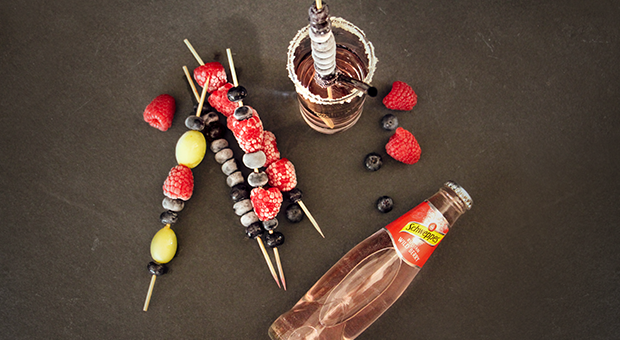 So einfach funktioniert es: Reife Früchte der Saison wie zum Beispiel Himbeeren, Trauben und Heidelbeeren auf Spießchen aufspießen. Anschließend werden die Fruchtspieße für mehrere Stunden, am besten über Nacht, ins Eisfach gelegt. Die fertigen Spießchen können dann in jeden Drink gegeben werden.