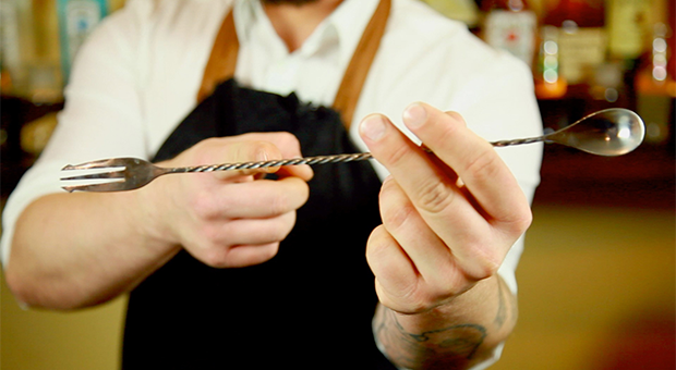 Wird ein Drink mit Zutaten im Glas ohne shaken aufgebaut, so kommt der Barlöffel zum Einsatz, um die Zutaten gleichmäßig zu verührren.