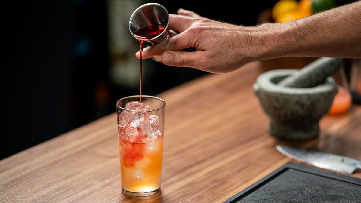 In ein mit Eiswürfeln gefülltes Longdrinkglas geben.