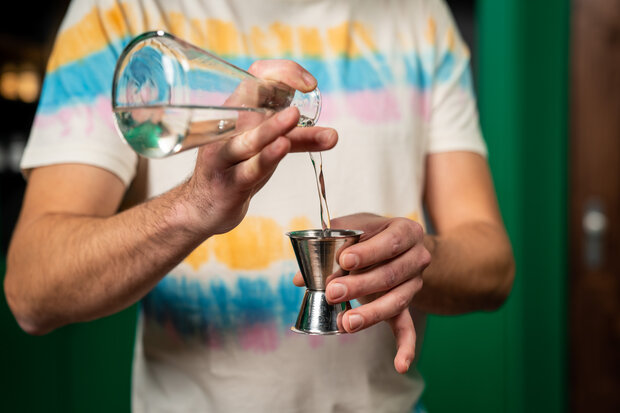 Jigger oder einen Messbecher, auch ein Eierbecher kann euch hier helfen