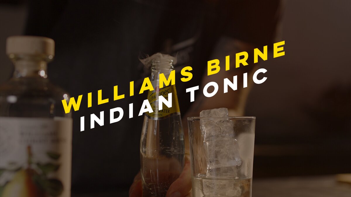 Williams Birne in ein mit Eis gefülltes Longdrinkglas geben und mit Schweppes Indian Tonic Water auffüllen. Anschießend mit einer Birnenspalte garnieren und genießen.