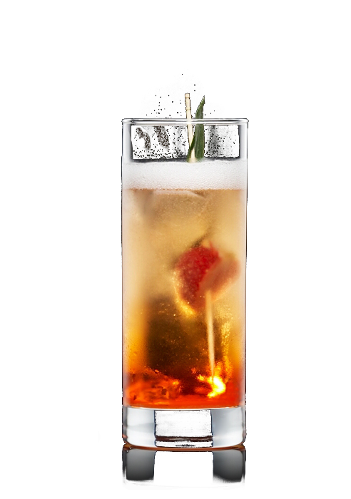 Den Aperol über zwei bis drei Eiswürfel in ein Longdrinkglas gießen. Das Glas mit Champagner auffüllen.