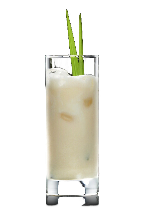 Alle Zutaten in den Elektromixer geben und gut durchmischen. Auf weitere Eiswürfel in ein Longdrinkglas abgießen.