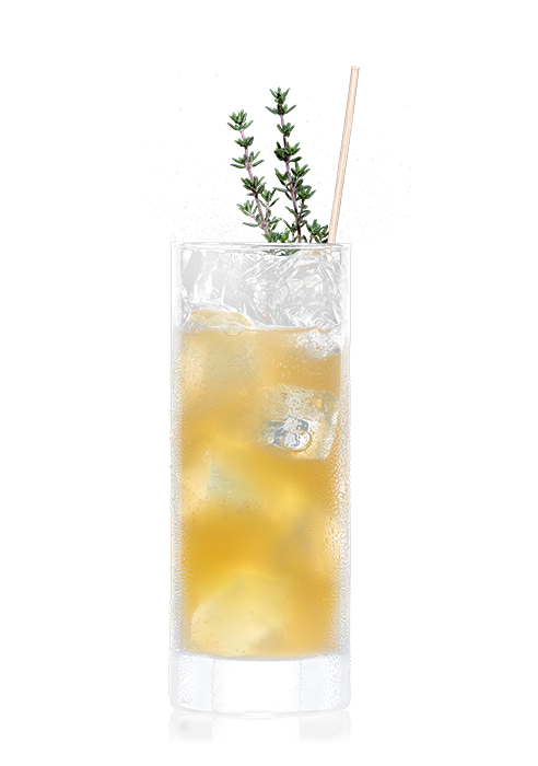 Alle Zutaten mit Eiswürfeln in ein Longdrinkglas geben und verrühren. Mit einem Zweig Thymian garnieren.
