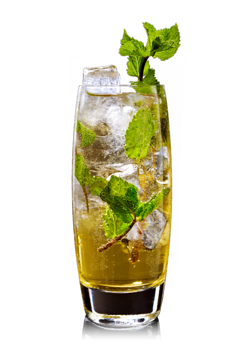 Die Blätter von zwei Minzzweigen in das Glas zupfen. Eiswürfel hinzufügen und mit Schweppes Ginger Ale auffüllen.