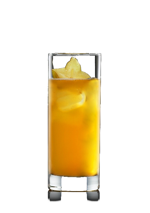 Alle Zutaten mit einigen Eiswürfeln in den Shaker geben, kräftig schütteln und durch das Barsieb auf weitere Eiswürfel in ein Longdrinkglas abgießen.