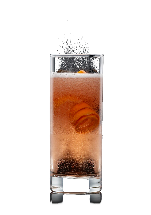 Vermouth und Weinbrand mit Eiswürfeln in ein Longdrinkglas geben und gründlich verrühren. Mit Schweppes Soda Water auffüllen. Vor dem Servieren nochmals umrühren. Zum Schluss mit einer Zitronenschale servieren.
