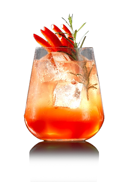 Paprika klein schneiden, im Shaker zerstoßen und zusammen mit Grapefruit, Vanillesirup und Eiswürfeln in demselben Shaker kräftig shaken, sodass der Geschmack und die Farbe aus der Paprika kommen. Danach in ein Tumbler mit Eiswürfeln doppelt abseihen (durch ein Sieb geben) und mit Schweppes Indian Tonic Water auffüllen. Anschließend mit Rosmarinzweig und Paprikascheibe garnieren.