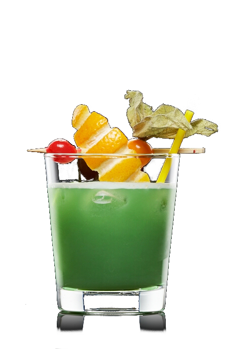 Alle Zutaten im Shaker mit einigen Eiswürfeln kräftig schütteln und durch das Barsieb auf weitere Eiswürfel in ein Tumblerglas abseihen.