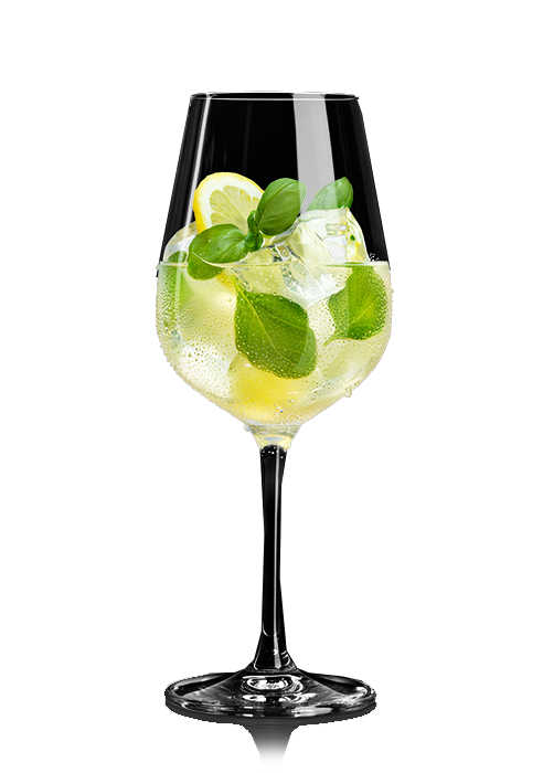 Ramazzotti Aperitivo Rosato und Pfirsichsaft in ein Weinglas geben und mit Eiswürfeln füllen. Mit Schweppes Soda Water auffüllen und umrühren. Den Drink mit Basilikumblättern und Zitrone garnieren.