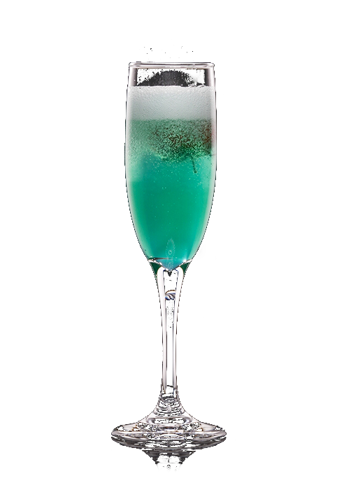 Eine Sektflöte mit eiskaltem trockenem Champagner füllen. Die anderen Zutaten zusammen mit einigen Eiswürfeln in den Shaker geben und kräftig schütteln; die Mischung durch das Barsieb zum Champagner geben. Sofort servieren ohne vorher umzurühren.