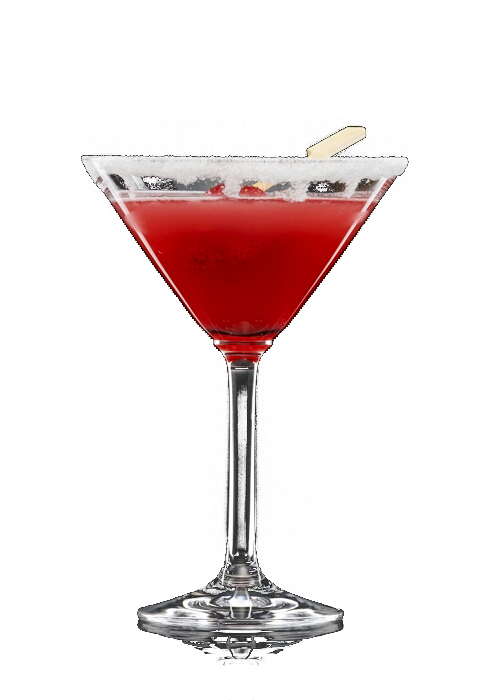 Den Rand eines Martiniglases mit einem Zitronenviertel befeuchten und in einen flachen, mit Zucker gefüllten Teller tupfen. Tequila, Cointreau, Limettensaft, Erdbeersirup und ca. sechs Erdbeeren im Elektromixer gut durchmischen. Das Ganze mit einigen Eiswürfeln im Shaker kräftig schütteln und durch das Barsieb in das Glas abgießen. Eine weitere Erdbeere einschneiden und an den Glasrand hängen.