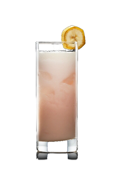 Alle Zutaten außer Schweppes Indian Tonic Water mit Eiswürfeln im Shaker kräftig shaken. Den Cocktail durch ein Barsieb auf neue Eiswürfel in ein Longdrinkglas abseihen. Mit Schweppes Indian Tonic Water auffüllen. Mit einer Bananenscheibe servieren.