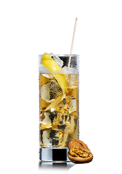 Bourbon, Walnut Bitters, Eiswürfel und Zitronenzeste in ein Longdrinkglas geben und mit Schweppes American Ginger Ale auffüllen.