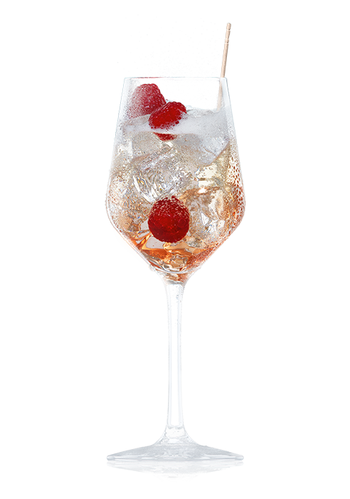 Roséwein und Schweppes Original Wild Berry in ein mit Eiswürfeln gefülltes Weinglas geben und mit frischen oder tiefgekühlten Beeren garnieren.