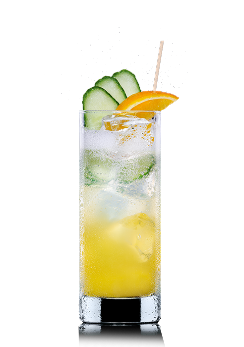Eiswürfel, Gurkenscheiben, Wodka, Holunderblütensirup und Orangensaft in ein Longdrinkglas geben und anschließend mit Schweppes Indian Tonic Water auffüllen und umrühren. Zum Schluss mit einer Orangenspalte und Gurkenscheiben servieren.