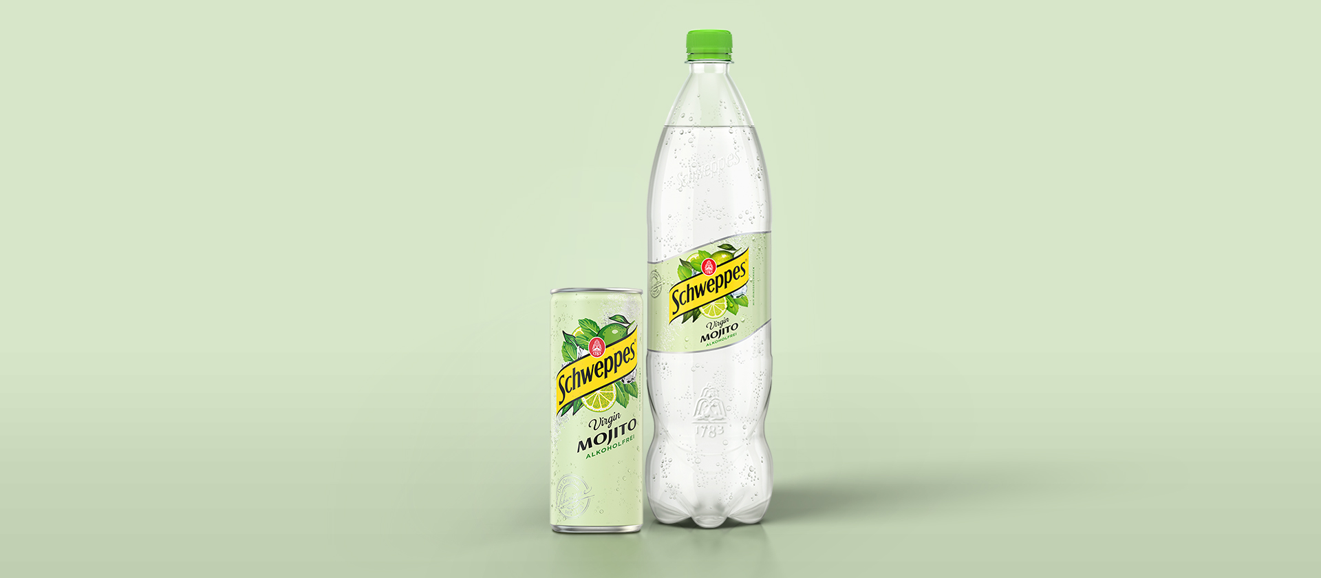 Schweppes Virgin Mojito feiert den weltweit beliebten Cocktailklassiker: Der Geschmack spritziger Limette, frischer Minze und die für Schweppes so typische feinperlige Kohlensäure, die auf der Zunge prickelt.