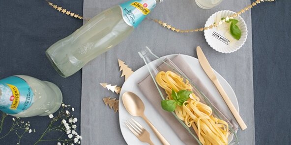 Bevor du die Schweppes Flaschen benutzten kannst müssen sie natürlich leer sein. Am besten gelingt dir das mit dem White Peach Spritz. Einfach etwas Mumm Rosé Dry zusammen mit unserem Schweppes White Peach in ein großes Glas geben und genießen - am besten gleich nachmachen!